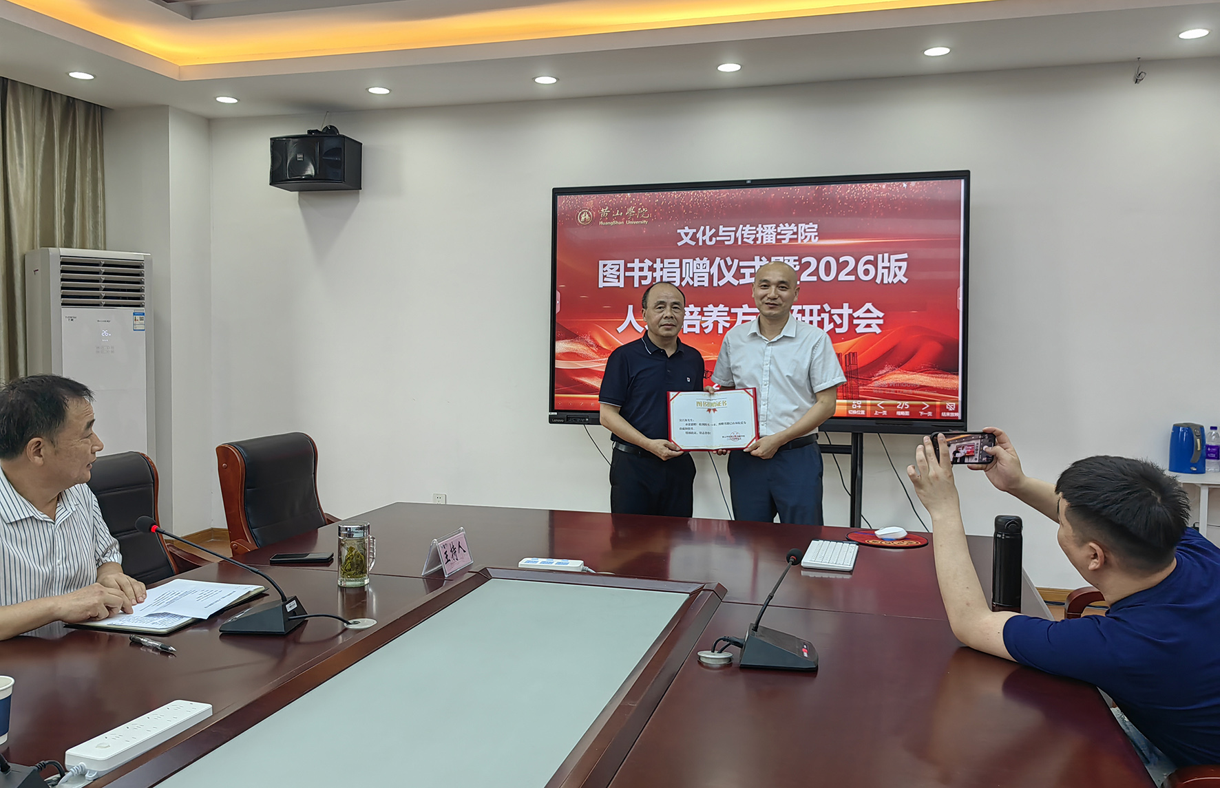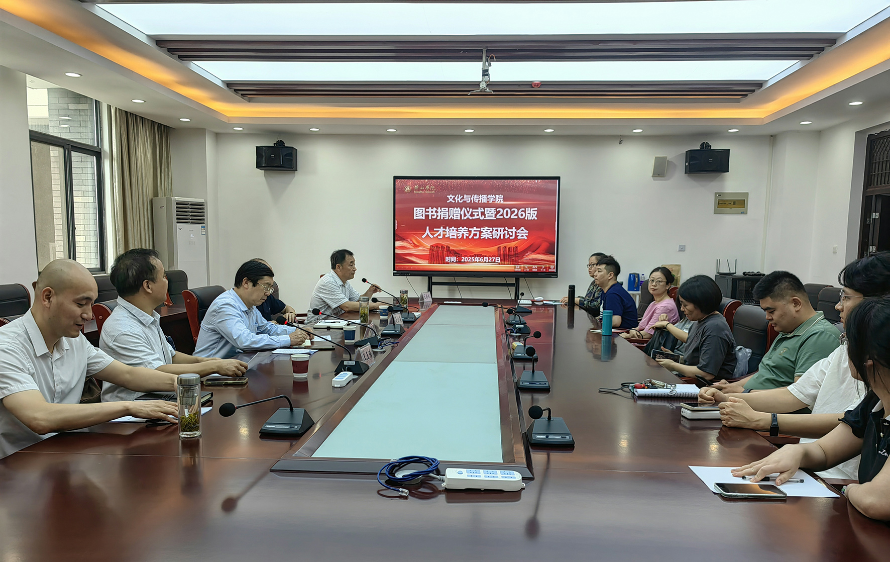 6月27日,竞博jbo网页版在文澜楼320会议室举办2026版人才培养方案研讨会暨新闻作品图书捐赠仪式。安徽日报驻黄山记者站原站长、高级记者吴江海,黄山日报社党委书记、总编辑吴顺辉,暨南大学新闻与传播学院教授、博士生导师王玉玮,竞博jbo网页版部分教师等出席研讨会。活动由公司党委书记路善全主持。