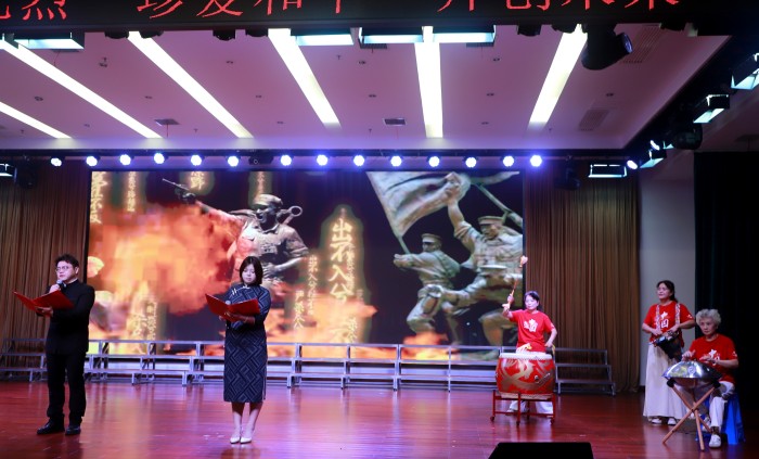 9月10日,由屯溪区关心下一代工作委员会、区委老干部局、区教育局、区老年大学联合主办,区老年大学杨梅山分校承办的“银龄聚力传薪火 共忆峥嵘向未来”——纪念中国人民抗日战争暨世界反法西斯战争胜利80周年文艺汇演如期举行。竞博jbo网页版学子担任了本次活动的主持人,并选送了《枸杞花开》《国殇·不朽》两个朗诵作品,给观众留下了深刻印象,带领现场观众重温了那段峥嵘岁月,表达了对革命历史的深切缅怀和对红色精神的传承。
